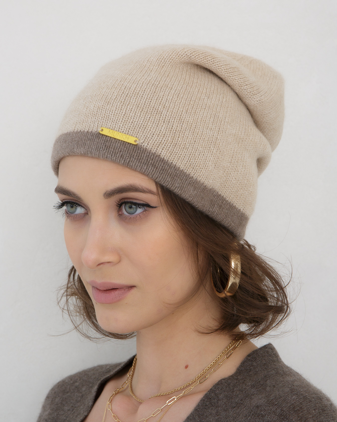 Шапка из кашемира 04186 бежевая