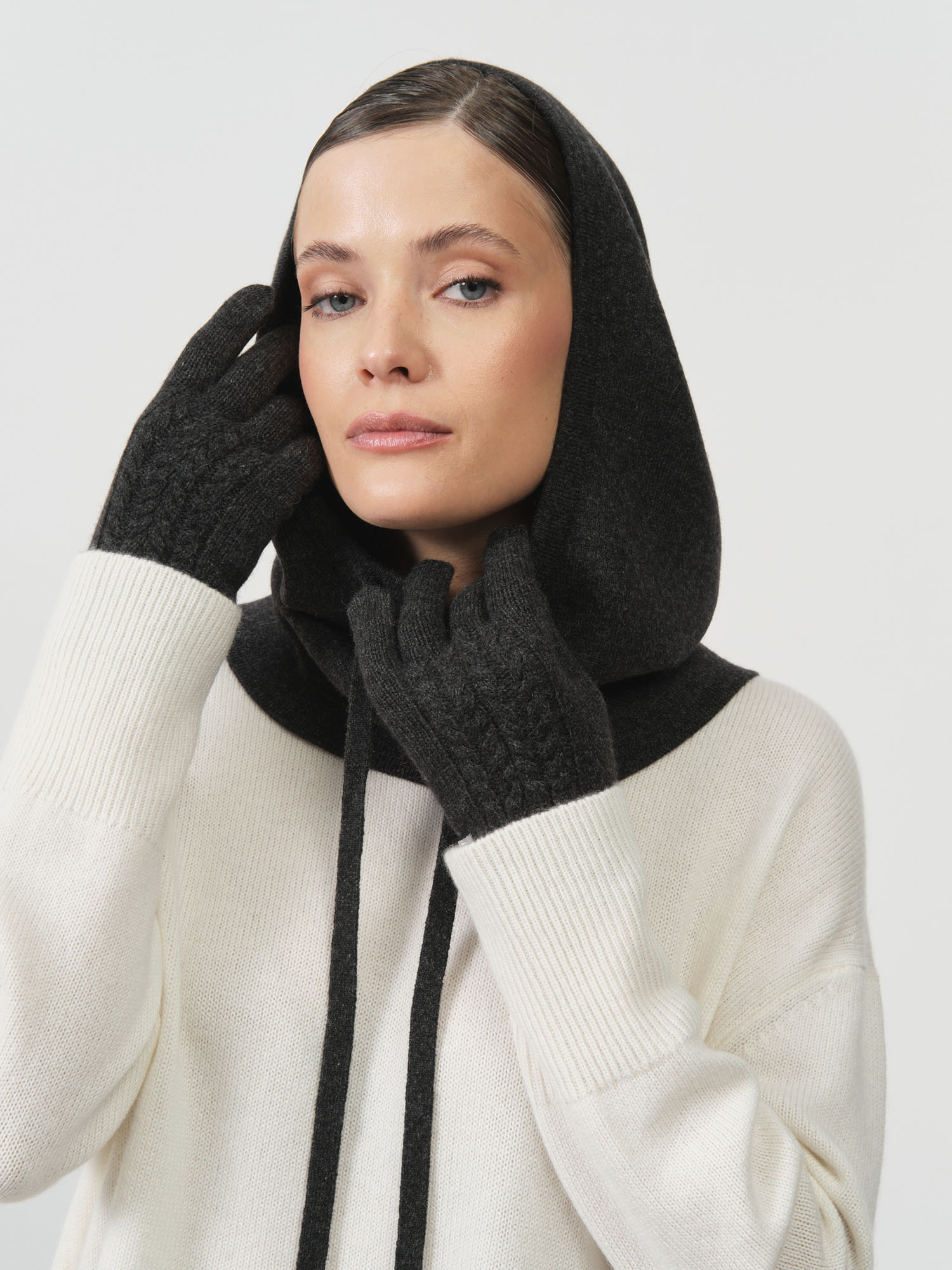Мягко облегает голову, защищает уши и шею от холода. Посадка комфортная, без давления. Универсальный размер подходит большинству типов лица и позволяет носить капор как поверх причёски, так и на гладкие волосы.