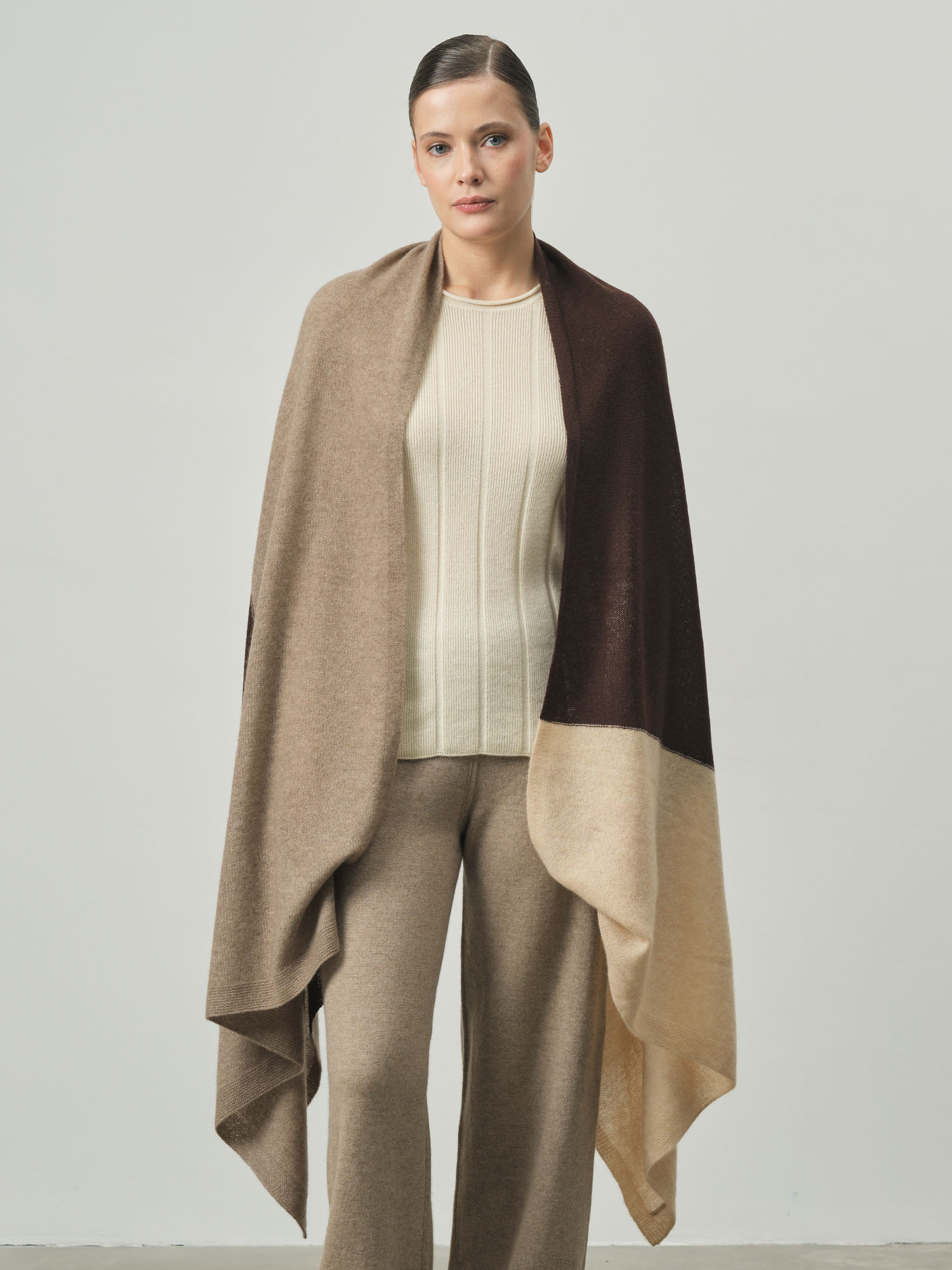 100% кашемир. Натуральный кашемир отличается исключительной мягкостью, лёгкостью и превосходными теплоизоляционными свойствами. Материал приятен к коже и обеспечивает комфорт в прохладную погоду.