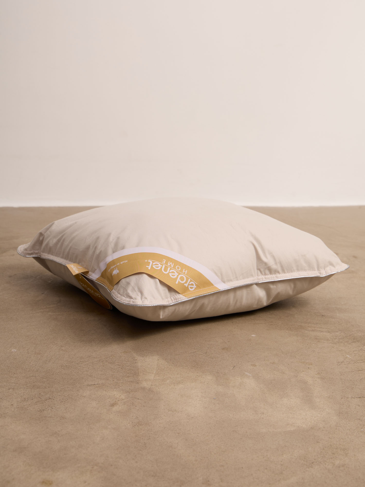 Средняя степень упругости обеспечивает комфортную поддержку головы и шеи. Подушка сохраняет объем, не сбивается и не теряет форму при регулярном использовании. Подходит для сна на спине и на боку, создавая ощущение мягкого, обволакивающего комфорта.