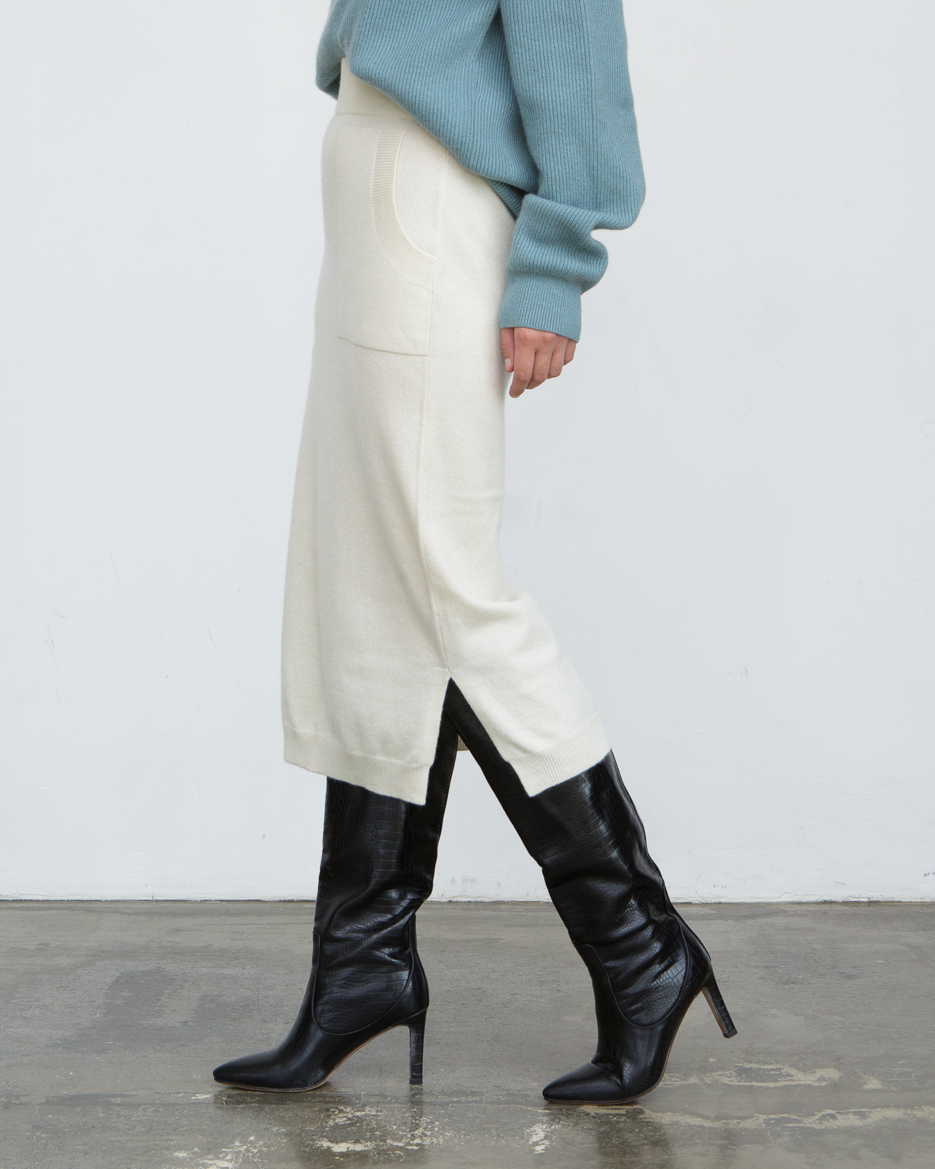 Кашемировая юбка — элегантная модель миди длины, подчёркивающая силуэт и создающая утончённый женственный образ. Идеально подходит для базового гардероба и актуальных минималистичных сочетаний.