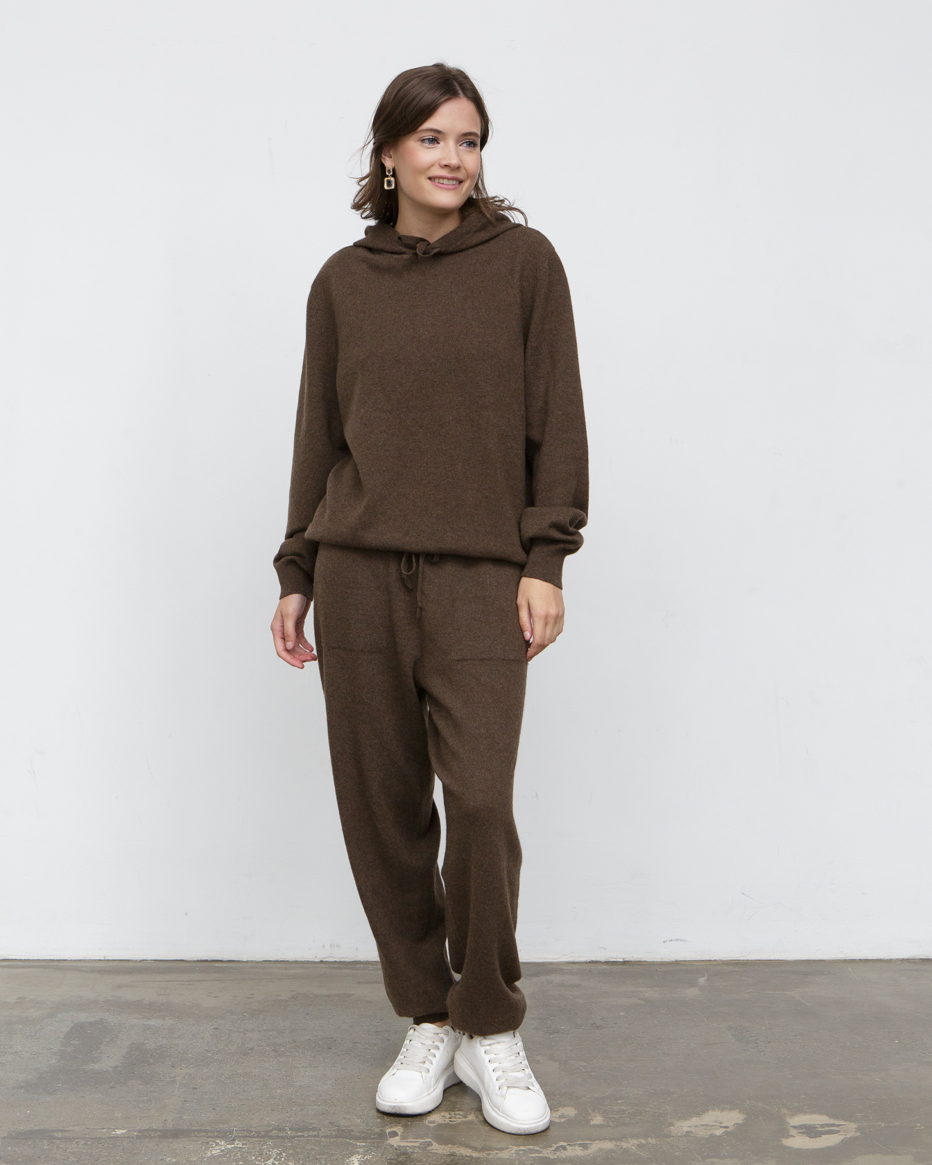 Джемпер с капюшоном из пуха яка 01252 коричневый