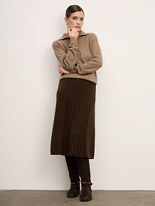 Юбка гармонично сочетается с объёмными свитерами, водолазками и жакетами. Отлично смотрится с ботильонами, сапогами или грубой обувью для создания современного образа.
