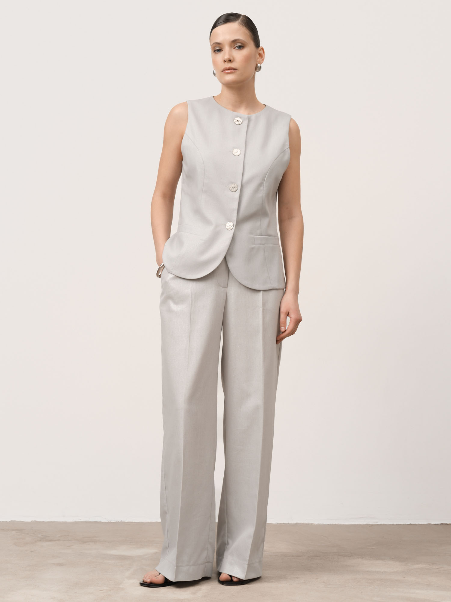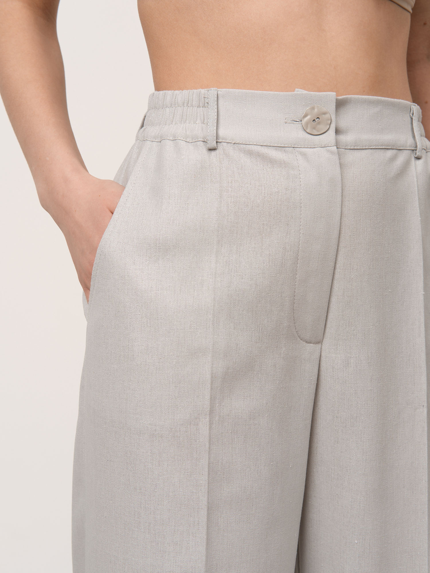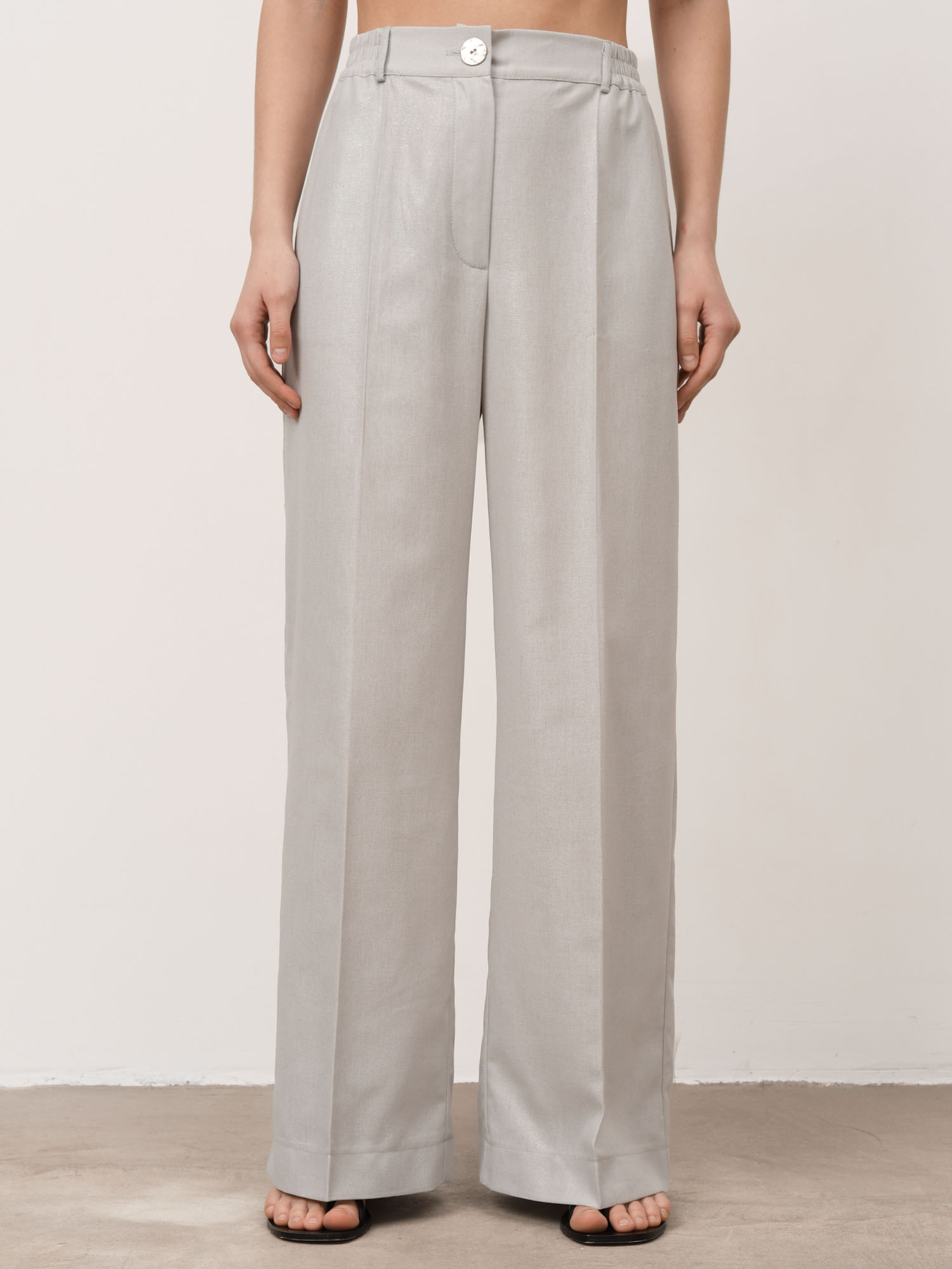 Влюбилась в этот серебристый оттенок! Брюки из натурального льна, очень приятный на ощупь материал. Легкие, дышащие, идеальны для жаркого лета.