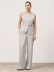 Женские брюки из льна — элегантная базовая модель с прямым силуэтом, сочетающая комфорт и сдержанную классику. Идеальны для теплого сезона и повседневных образов.