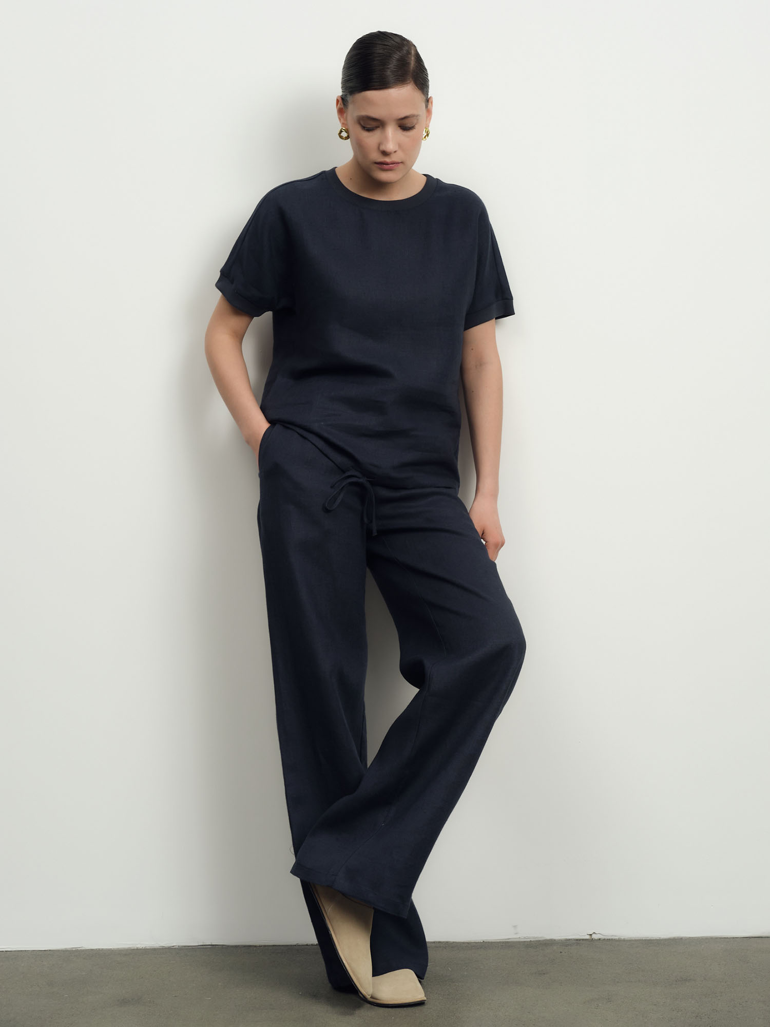 100% лен — натуральный, дышащий материал с высокой гигроскопичностью. Обеспечивает прохладу в жаркую погоду и отличается экологичностью.