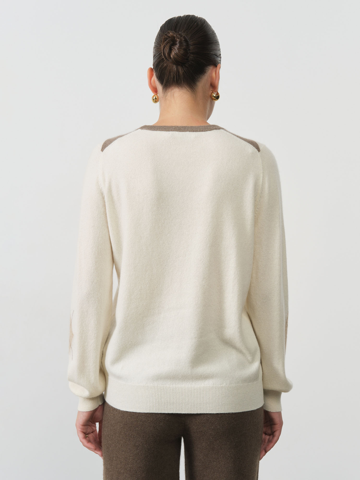 Благородный нейтральный оттенок делает эту модель универсальной основой гардероба. Джемпер одинаково органично смотрится с деловыми костюмами, создавая элегантный офисный образ, и с джинсами для повседневных прогулок. Полуприлегающий крой мягко обрисовывает силуэт, сохраняя при этом комфортную свободу движений, а классическая горловина добавляет образу завершенность.