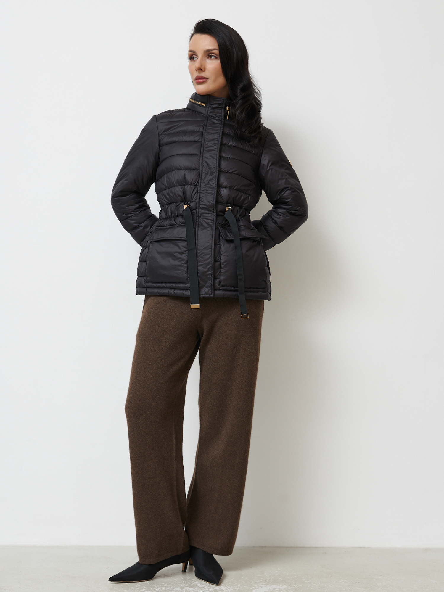 Стильная женская куртка черного цвета — идеальный выбор для прохладной погоды. Изготовлена из легкого и теплого материала, обеспечивающего комфорт и защиту от ветра. Куртка имеет удобный пояс, подчеркивающий талию и создающий женственный силуэт. В комплекте предусмотрены глубокие карманы на молниях для надежного хранения мелочей. Практичный дизайн и лаконичные линии делают эту куртку универсальной для повседневного гардероба.