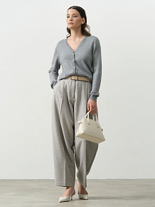 Застёжка на пуговицы, аккуратная трикотажная отделка манжет и нижнего края, декоративные элементы на рукавах. Ровная вязка обеспечивает сохранение формы и аккуратный внешний вид.