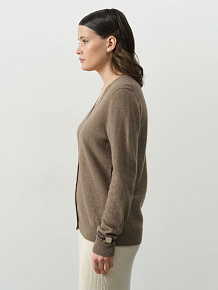 Застёжка на пуговицы, аккуратная трикотажная отделка манжет и нижнего края, декоративная отделка на рукавах. Ровная вязка помогает изделию сохранять форму.